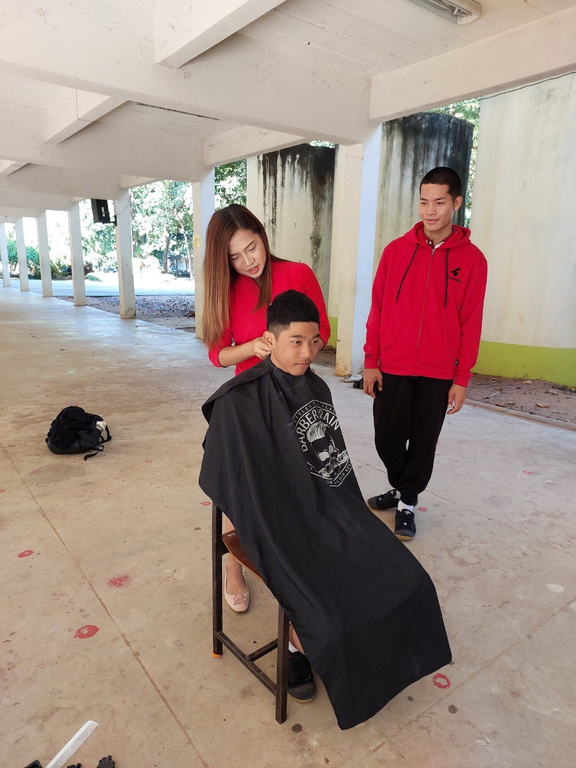 ตัดผมให้กับนักเรียนเพื่อให้ถูกต้องตามระเบียบของโรงเรียน