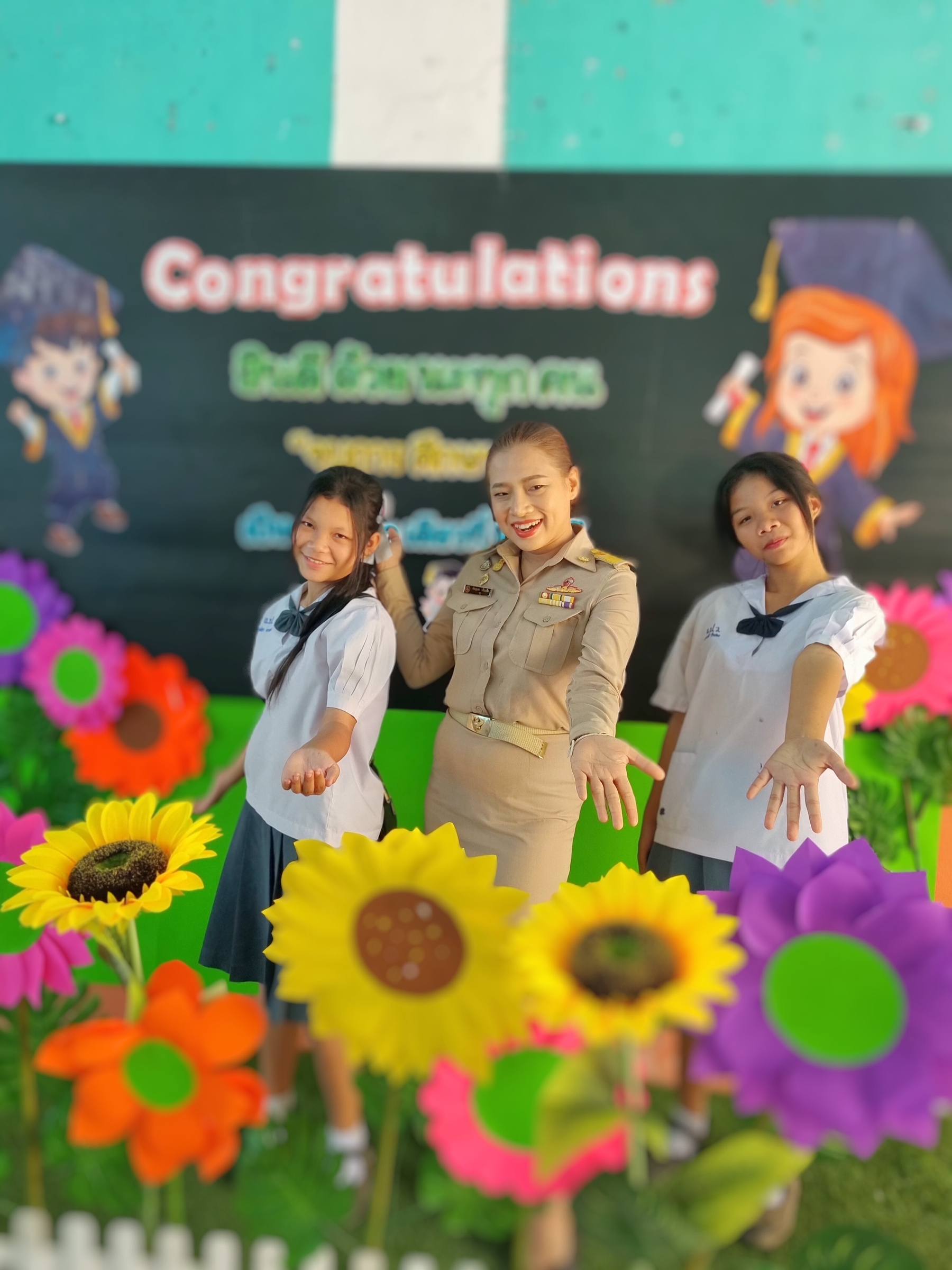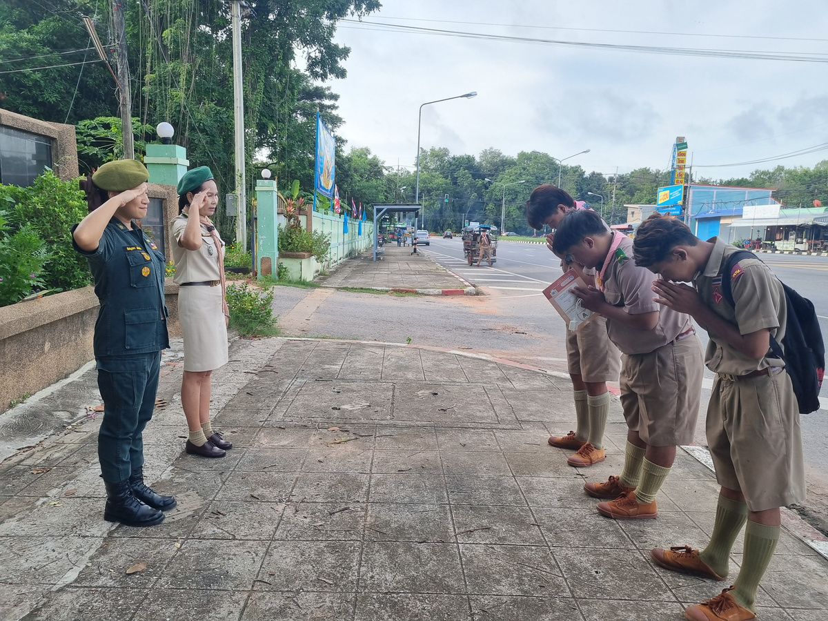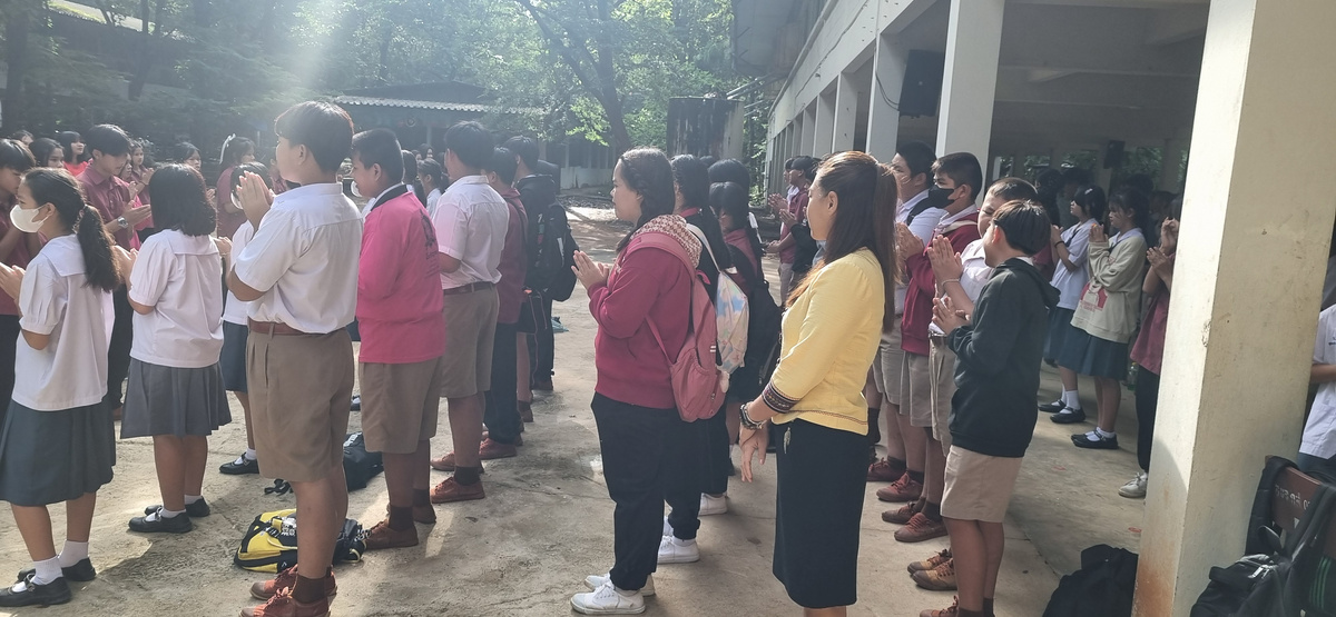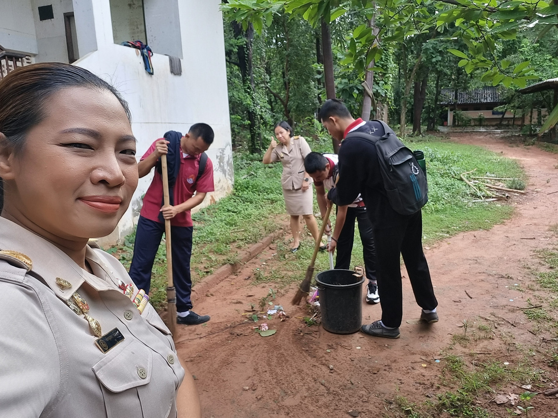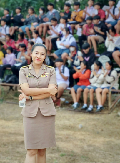 และปฏิบัติหน้ที่ครูประจำชั้นดูแลนักเรียนทำกิจกรรมเคารพหน้าเสาธง