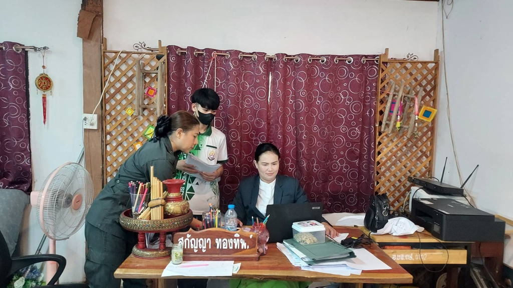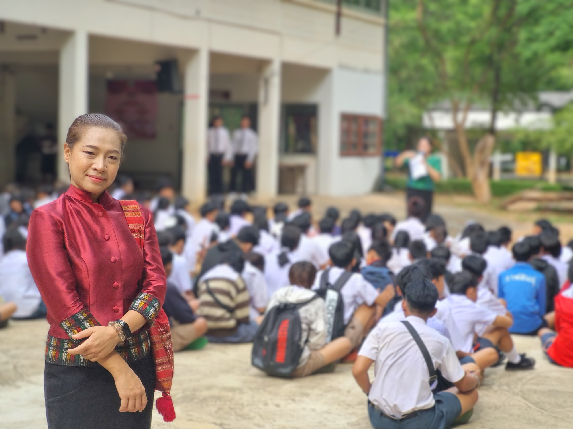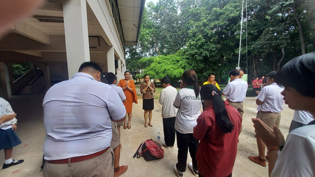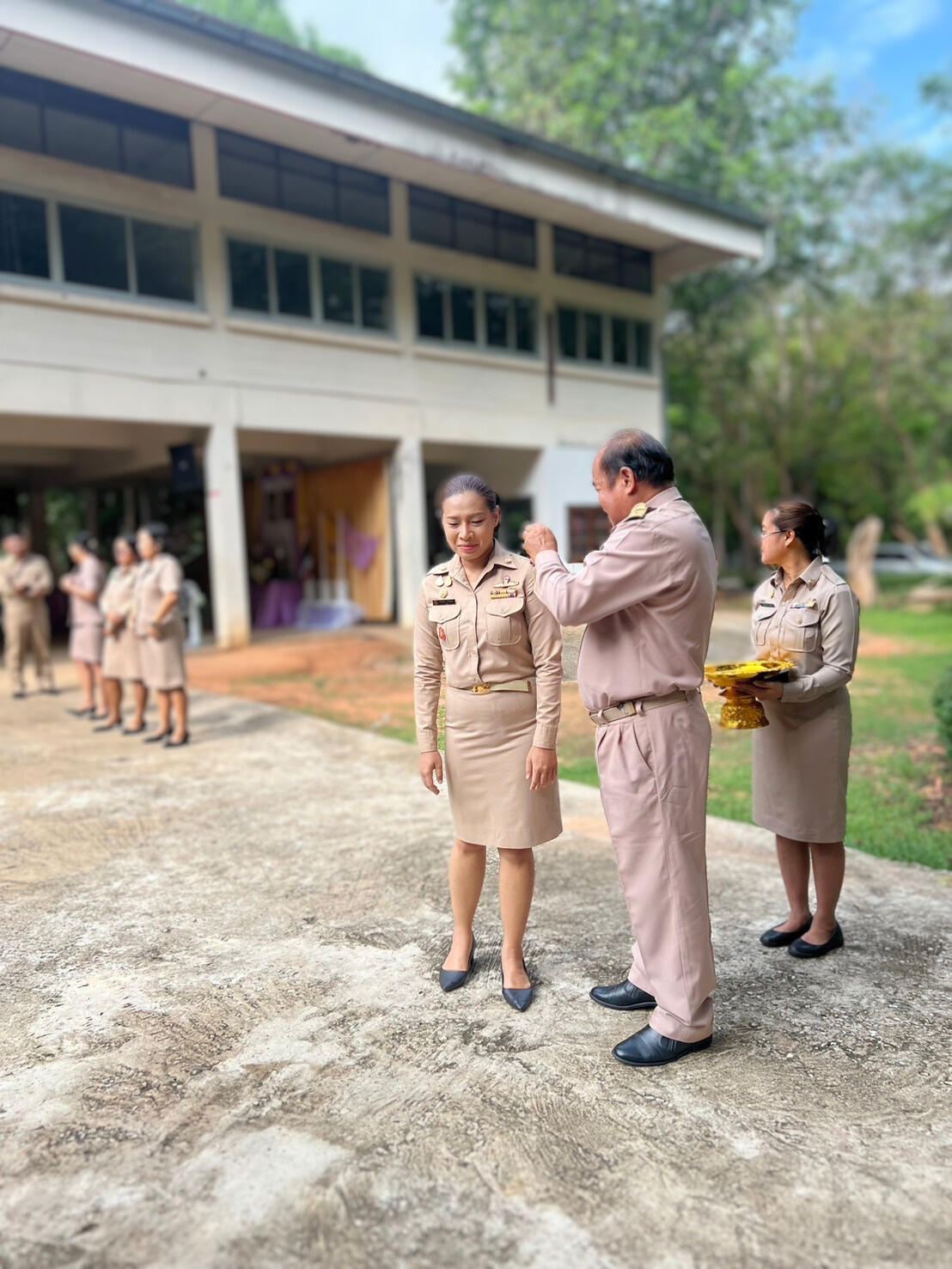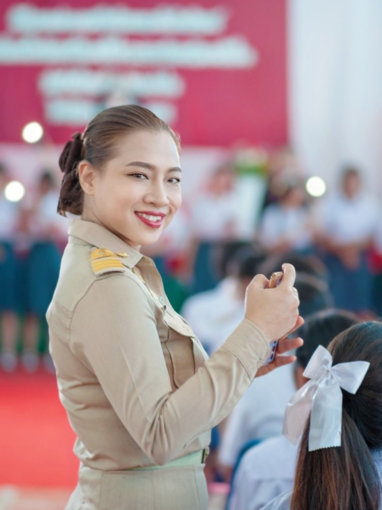 และปฏิบัติหน้ที่ครูประจำชั้นดูแลนักเรียนทำกิจกรรมเคารพหน้าเสาธง