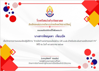 ผู้ช่วยวิทยากรการอบรมเชิงปฏิบัติการ”การจัดทำเอกสารออนไลน์ด้วย QR code เพื่อการประเมินตามหลักเกณฑ์ วPA”
