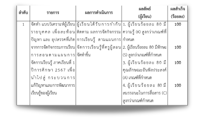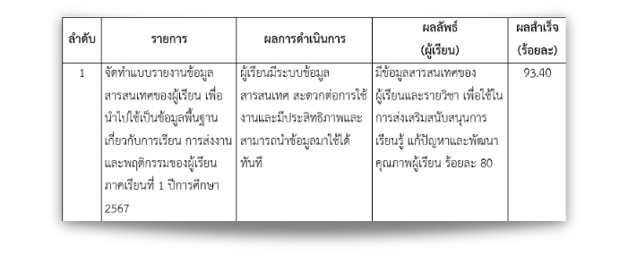 1) จัดทำข้อมูลสารสนเทศของผู้เรียนและรายวิชา