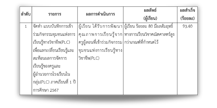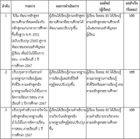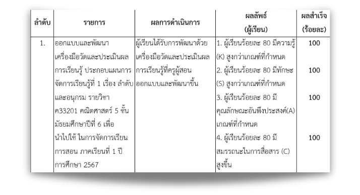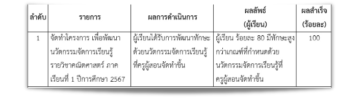 จัดทำโครงการพัฒนาการจัดการเรียนรู้กลุ่มสาระการเรียนรู้คณิตศาสตร์ให้เป็นไปตามขั้นตอนและระยะเวลาที่กำหนด