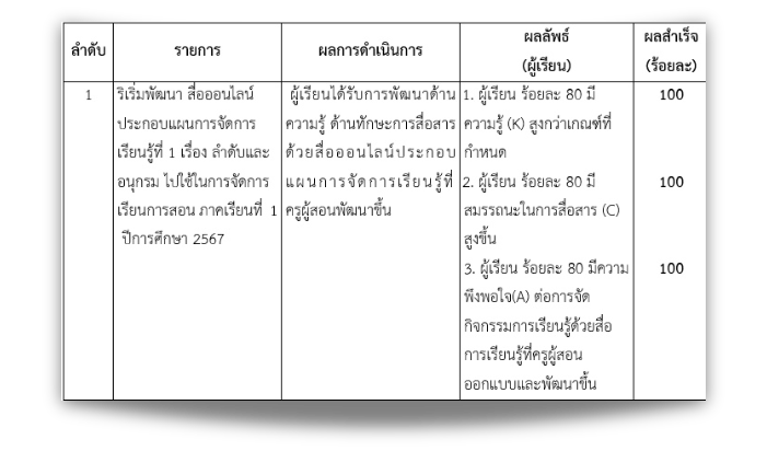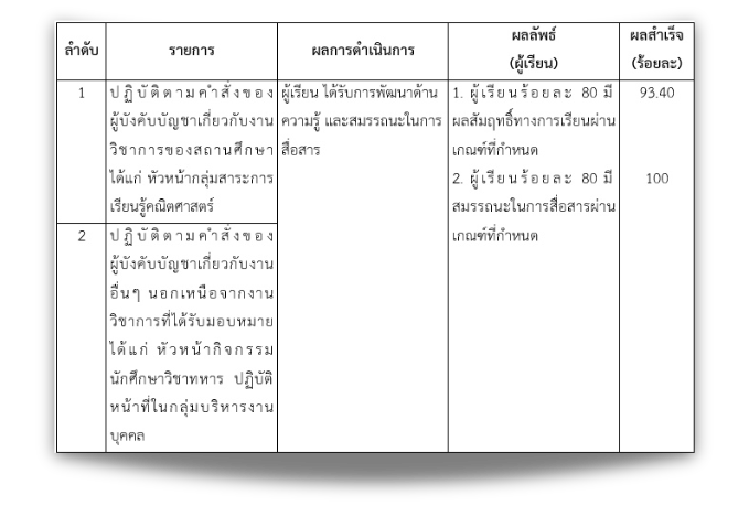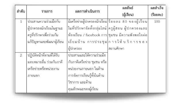2.รายงานผลสำเร็จในการพัฒนางานตามมาตรฐานตำแหน่ง :