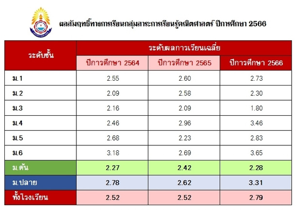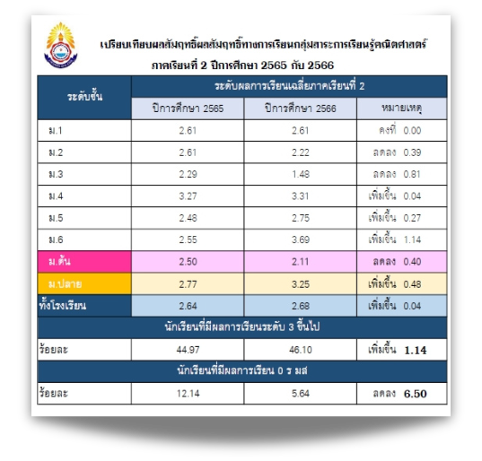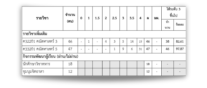 การสรุปผลสัมฤทธิ์ฯ ของกลุ่มสาระการเรียนรู้เพื่อเป็นสารสนเทศให้ครูนำไปใช้พัฒนาการจัดการเรียนการสอน